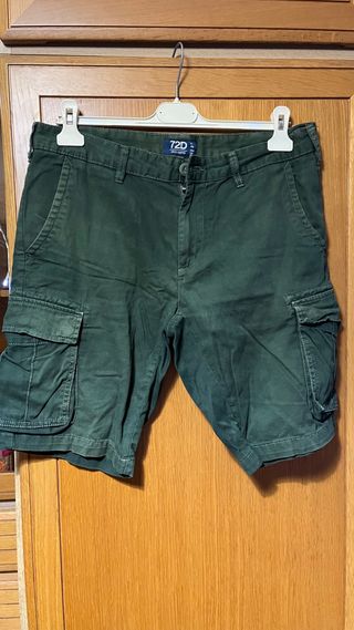 Pantaloncini da uomo in stile cargo. - Tasche laterali con patta. - Chiusura con bottone e zip. - Passanti per cintura.