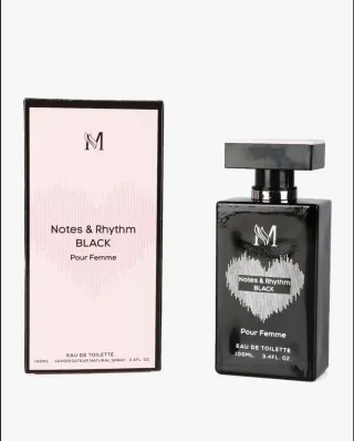 Profumo da donna Notes & Rhythm Black Eau de Toilette. - Fragranza floreale e fruttata. - Note di testa: bergamotto, pera, pepe rosa. - Note di cuore: rosa, gelsomino, fiori d'arancio. - Note di fondo: patchouli, muschio, vaniglia. - Formato: 100ml.