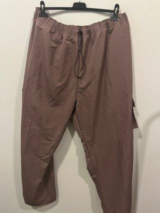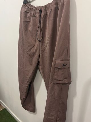 Pantaloni cargo del marchio Nike in colore marrone. Design moderno e funzionale. - Cintura elastica con cordoncino. - Tasca laterale. - Tessuto leggero.