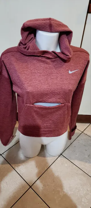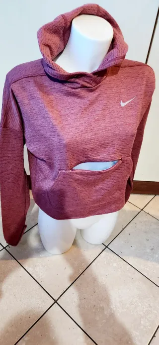 Felpa Nike taglia S da donna, praticamente nuova, l'unico difetto è uno dei lacci (vedi foto) per il resto intatta. Se la acquisti ti regalo una maglietta Adidas dal mio profilo