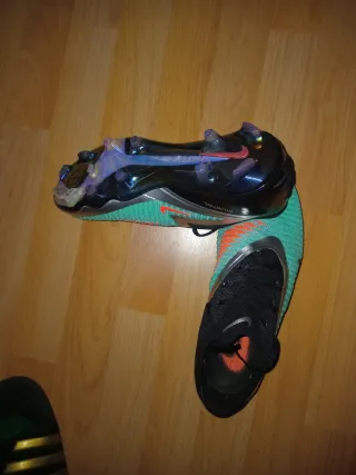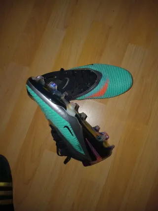 Scarpe da calcio Nike Mercurial con un design accattivante. Colore blu con dettagli in giallo. Chiusura con lacci. Hanno un uso molto limitato.