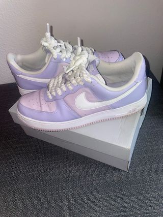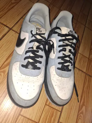 Vendo Nike Air Force 1 originali, taglia EU 40 (US 7). In buono stato. Hanno lievi segni d'uso all'interno, normali per l'uso (vedi foto). Colore grigio chiaro con dettagli in blu e bianco. Includono scatola originale. Scarpe pulite e curate, come si vedono nelle foto. Spedizione o consegna a mano. Rispondo rapidamente, non esitare a scrivermi.