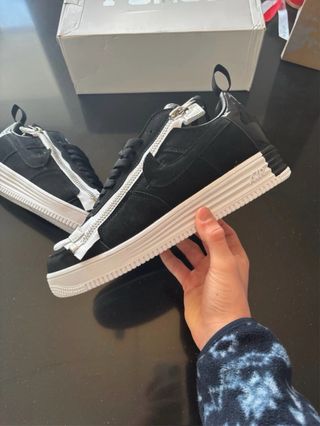 Sneakers Nike x ACRONYM Air Force 1 in bianco e nero. Design unico con cerniera. Chiusura con lacci. Dettaglio con cerniera laterale. Suola in gomma bianca.