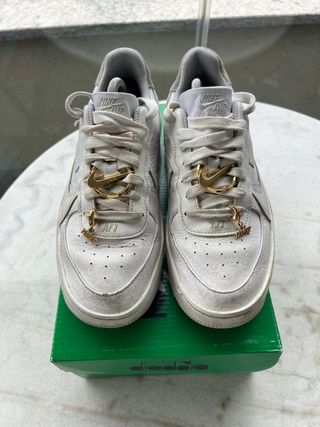 Vendo un paio di sneakers Nike Air Force 1 in colore beige. Sono in ottime condizioni, come nuove. - Modello classico e intramontabile - Perfette per un look casual e di tendenza - Comode e leggere