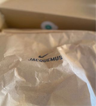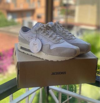 Scarpe Nike Air Max in collaborazione con Jacquemus. - Tomaia in pelle e scamosciato. - Dettagli traforati. - Suola con unità Air visibile. - Etichetta AIR con logo Nike.