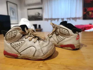 Vendo delle Nike Air Jordan, sono in buone condizioni, la punta è leggermente piegata, sono un po' sporche e presentano piccole tracce di usura, l'interno non è danneggiato, solo le suole sono un po' sporche, i lacci sono perfetti, in generale sono in buone condizioni