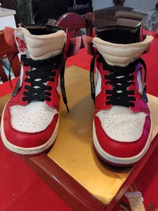 Scarpe Nike Jordan 1 Retro High Off-White Chicago. - Design iconico. - Dettagli rossi e bianchi.