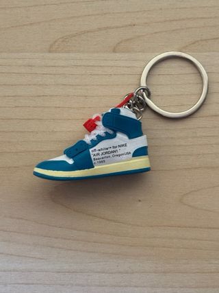 Portachiavi a forma di sneaker Nike Air Jordan 1. - Design dettagliato. - Colori bianco e blu.