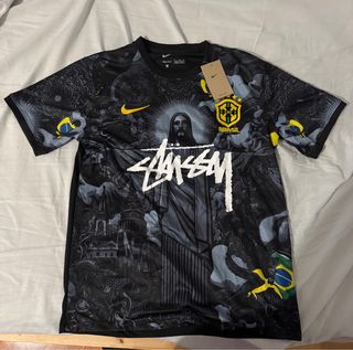 Maglia Stussy con stampa grafica ispirata al Brasile e a Gesù. - Design a maniche corte. - Logo Nike e stemma CBF Brasil. - Stampa Stussy centrale.
