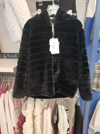 Morbida pelliccia sintetica per bambina, perfetta per le giornate più fredde. - Design con cappuccio. - Chiusura frontale con zip. - Texture a coste orizzontali.