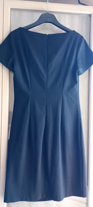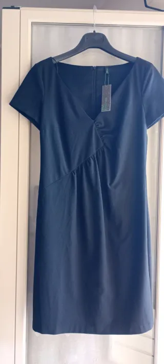 Elegante abito invernale di colore nero. - Scollo a V incrociato. - Maniche corte. - Dettaglio drappeggiato in vita.