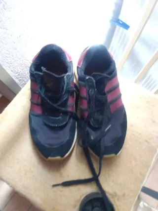 Scarpe da ginnastica da donna in buone condizioni. - Design sportivo con dettagli rossi. - Tomaia in tessuto e scamosciato. - Chiusura con lacci.