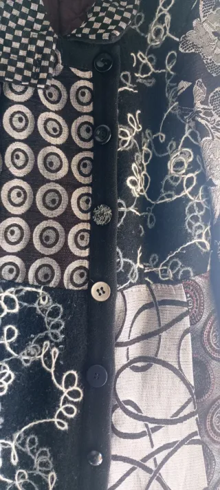 Cappotto dal design unico e originale, perfetto per aggiungere un tocco di stile al tuo guardaroba. - Fantasia patchwork. - Chiusura con bottoni. - Collo a revers.