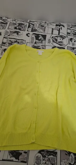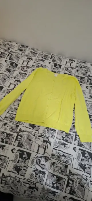 Cardigan da donna in un vivace color giallo. Un capo versatile per ogni occasione. Taglia L ma veste piccolo piccolo Spalle 41cm, lunghezza 54cm - Maniche lunghe. - Chiusura con bottoni. - Scollo rotondo.