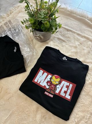 Maglietta nera con stampa Marvel dedicata a Iron Man. - Stampa Marvel con logo. - Personaggio Iron Man stilizzato. - Design accattivante per i fan.