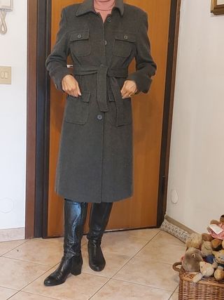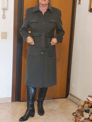 Elegante cappotto da donna in lana e cashmer caldo e morbido perfetto per un look sofisticato. Stile militare con cintura e tasche. Foderato Internamente. Praticamente nuovo. Usato pochissimo svendo perché a ne troppo grande. Taglia 46 italiano. Marca Combipel. - Design stile militare - Cintura in vita per una silhouette definita - Tasche frontali applicate - Chiusura con bottoni