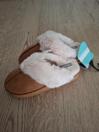 Comode ciabatte con un morbido rivestimento interno in pelo. Numero 39/40 Nuove ancora con etichetta - Materiale esterno scamosciato. - Dettaglio cuciture a vista. - Fodera interna in pelo.
