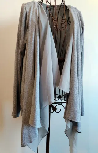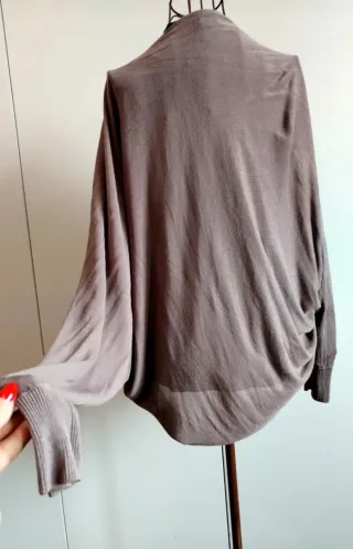 Cardigan in morbido tessuto, perfetto per ogni occasione. - Maniche ampie e drappeggiate. - Orlo a coste. - Design versatile. -Non c'è più l'etichetta ma è in morbida viscosa ed è taglia unica, ma veste tranquillamente fino a una taglia 46 italiana