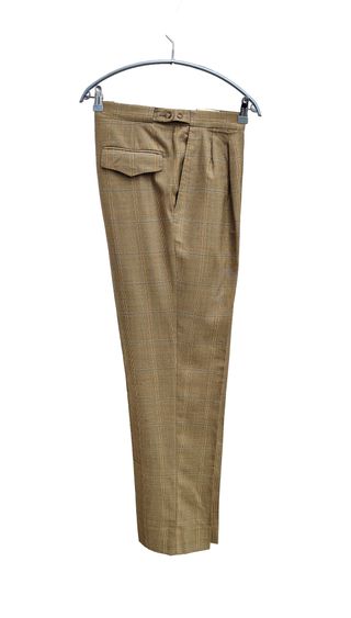 Zanella Sartoriale pantaloni classici da uomo Taglio classico con 3 pinces frontali e gamba larga. Realizzati in lana Principe di Galles Ermenegildo Zegna Trofeo. Taglia 50 italiana, corrisponde ad una L internazionale. Le misure con i pantaloni stesi in piano sono: vita 44, cavallo 29.5, larghezza fondo 22, lunghezza 113 cm circa. All'interno del fondo gamba si trovano 6 cm di tessuto. Hanno qualche punto dove le tarme hanno fatto dei forellini e hanno bisogno di essere lavati. I fori sono in tutto 6 o 7, si indossano senza problemi, ma ci sono. Indossati sono fantastici, non perdeteli!