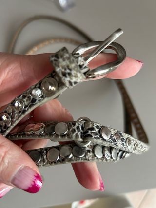 Elegante cintura con un design unico. - Stampa animalier - Fibbia in metallo - piccolo segno di usura nell’anello di pelle dove viene inserita la cintura