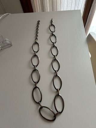 Cintura con maglie ovali in metallo. - Design a catena. - Chiusura a moschettone.