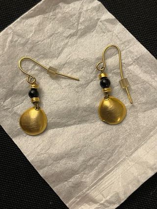 Eleganti orecchini a monachella con dettagli dorati e neri artigianali fatti a mano e marchiati - Design unico del MET Museum. - Montatura in metallo dorato. - Perle nere decorative.