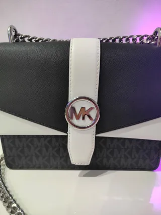 Elegante borsa Michael Kors con un design bicolore. - Logo MK sul davanti. - Dettagli a catena. - Tracolla regolabile Borsa Michael Kors colore nera e bianca, nuova ed originale con cartellino Misure 20x15x7 #mkmichaelkors