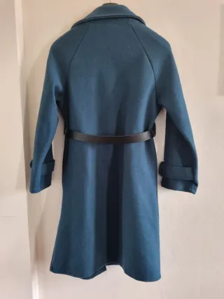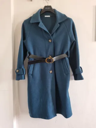 Elegante cappotto da donna, perfetto per aggiungere un tocco di stile al tuo guardaroba. - Colore blu petrolio intenso. - Cintura in vita per una silhouette definita. - Bottoni a contrasto. - Polsini con dettaglio. - Tessuto di qualità.