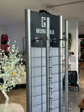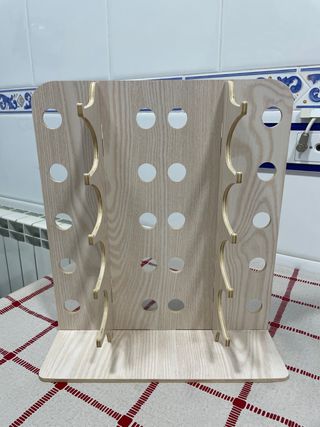 Espositore in legno con design moderno per occhiali. - Materiale: Legno chiaro. - Design con più fori. - Base stabile per posizionare su superfici.