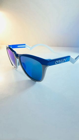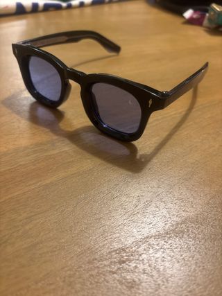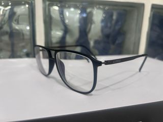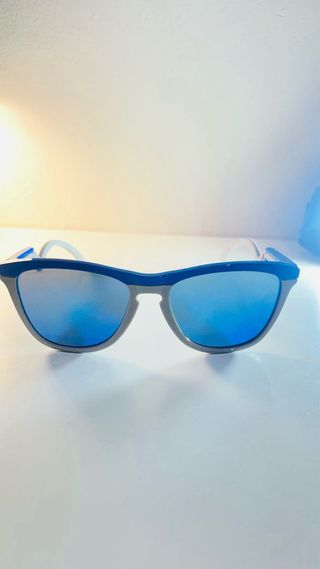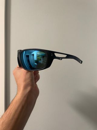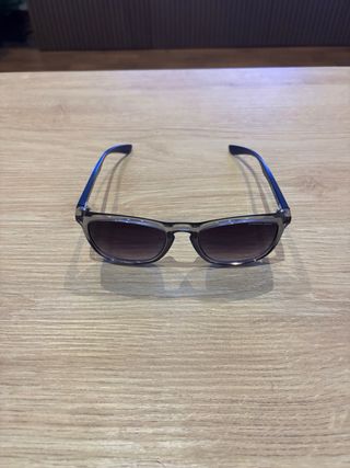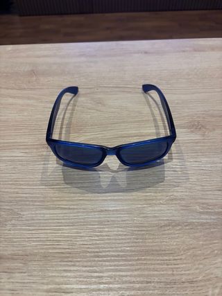 Occhiali da sole con montatura blu. Design moderno e leggero. Lenti scure per protezione. Forniti con custodia e cordino di sicurezza originali. Prezzo negoziabile.