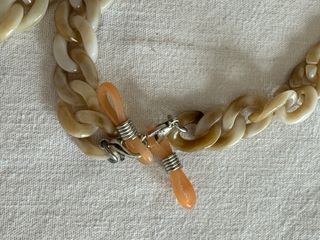 Catena elegante per occhiali con un design di anelli spessi. Perfetta per tenere i tuoi occhiali a portata di mano. - Anelli in resina nei toni del beige e del marrone. - Chiusura sicura.