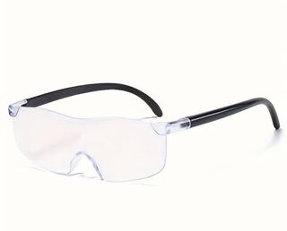 Occhiali trasparenti con aste nere, ideali per ingrandire o leggere. - Lenti trasparenti. - Aste nere.
