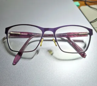 Montatura per occhiali da vista in un vistoso colore viola. Design moderno ed elegante. Materiale resistente e leggero.