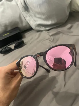 Confezione da due occhiali da sole Hawkers. - Nuovi, mai usati. - Conserva la scatola originale, l'involucro degli occhiali e tutto il resto. - Montatura nera. - Lenti con finitura a specchio in tonalità rosa.