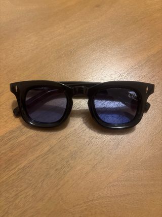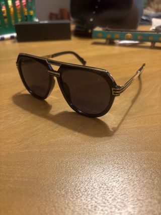 Occhiali da sole dal design moderno e accattivante. Perfetti per proteggere i tuoi occhi con stile. - Montatura spessa e robusta. - Lenti con una leggera sfumatura azzurra. - Dettagli metallici sui lati.