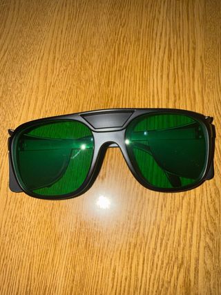 Occhiali ad alta protezione contro i raggi ultravioletti e infrarossi dannosi per gli occhi. Speciali per questo! Gli occhiali hanno una delle aste rotte, è incollata! Possono essere usati senza problemi!!