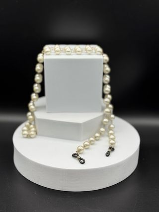 Elegante laccio per occhiali realizzato con perle finte. Un accessorio pratico e di stile. - Perle finte color oro e bianco. - Ganci neri per le stanghette degli occhiali. #accessori #fashion #occhiali