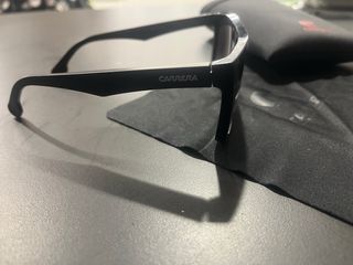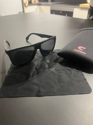 Occhiali da sole Carrera da uomo con un design moderno e sportivo. Combinano perfettamente stile e funzionalità. - Montatura nera con dettagli rossi. - Lenti con sfumature.