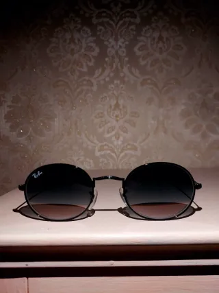 Occhiali da sole Ray-Ban con montatura rotonda. Nuovi compresi di tutto senza cartellino. - Montatura nera. - Lenti sfumate grigio.
