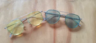 Occhiali da sole unisex brand: ALE-HOP colore: arancione e giallo info articolo: con montatura colorata. - Montatura in acetato. - Lenti nere. - Design rettangolare. materiale: plastica condizioni: usati in ottime condizioni ACQUISTO SOLO CON SPEDIZIONE ONLINE IN 24/48 ORE
