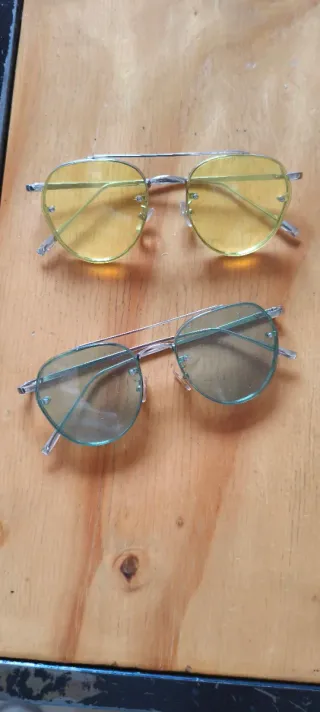 Moderni occhiali da sole con design aviator. - Lenti gialle. - Lenti verdi. - Montatura metallica.
