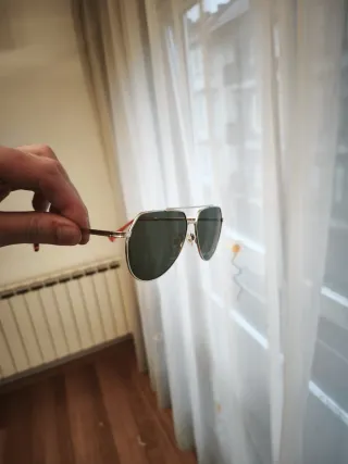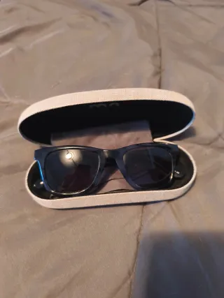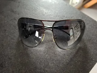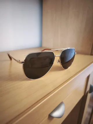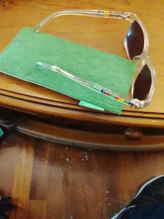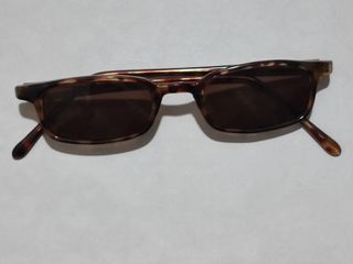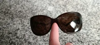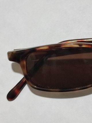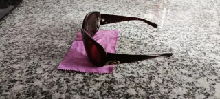 Gli occhiali sono praticamente nuovi, hanno pochissimo utilizzo. Montatura marrone. Lente scura.