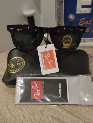 Occhiali da sole Ray-Ban Wayfarer Reverse originali, colore nero lucido con lenti verdi. Modello iconico e intramontabile, unisex, adatto a qualsiasi stile. Completi di tutto il corredo originale: ✔️ Scatola Ray-Ban ✔️ Custodia rigida originale Luxottica ✔️ Panno in microfibra Ray-Ban ✔️ Libretti e packaging Condizioni ottime: occhiali usati ma ben tenuti. Lenti pulite, montatura solida, nessun segno evidente di usura. Autenticità verificabile da: • logo metallico Ray-Ban sull’asta • custodia Luxottica originale • seriali interni Protezione UV 100%.