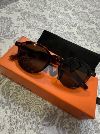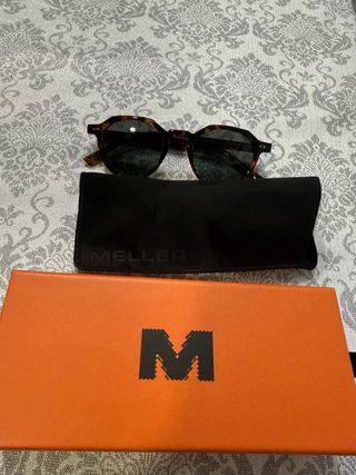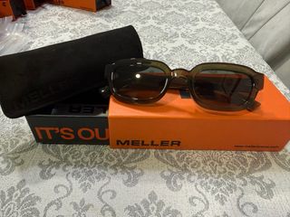 Occhiali da sole del marchio Meller con un design moderno. - Montatura marrone. - Include custodia protettiva. - Presentati in confezione originale.