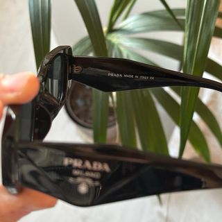 Occhiali da sole unisex Prada, in classico stile del brand. Accessorio che unisce design sofisticato e dettagli di alta moda; montatura in acetato nero dal taglio geometrico dona un look audace e contemporaneo.🕶️ Le lenti scure offrono protezione UV e un’ottima visibilità, garantendo comfort e stile in ogni occasione.🔆 Il logo Prada argentato sulle aste aggiunge un tocco di lusso e autenticità. Praticamente come nuovi, non c’è alcun segno di usura visible!👌🏼