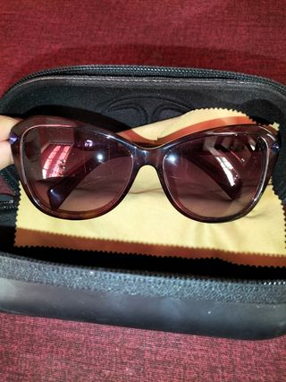 Occhiali da donna con montatura color marrone/viola. - Montatura ovale. - Lenti sfumate marroni. - Custodia originale inclusa.