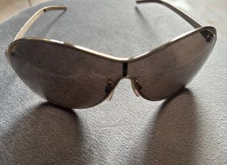 Occhiali da sole da donna con lenti a specchio. Montatura color argento. - Lenti con finitura a specchio. - Design moderno. - Stanghette in plastica. Non ricordo il brand. Utilizzate pochissimo perché poi mi è stato regalato un paio che mi piaceva di più.