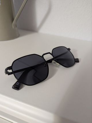 Occhiali da sole neri con montatura ottagonale. Vengono spediti con la loro scatola originale