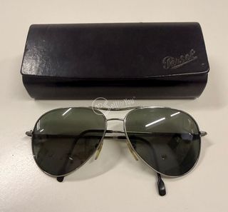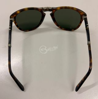 Occhiali da sole uomo Persol PO0714 made in Italy, pieghevoli, montatura in acetato color Avana e lenti colore verde dimensioni 5x5 cm circa, ponte 1,5 cm, aste 10 cm. Articolo usato, con imperfezioni come da foto.