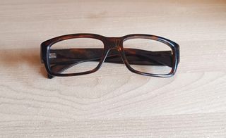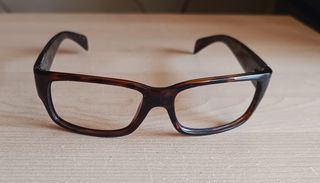 Serengeti montatura occhiali uomo. la montatura è in acetato di colore marrone, di forma rettangolare. sono in perfette condizioni, tranne un piccolo difetto sul fondo interno dell' asta destra non visibile quando indossato. come si vede da foto.